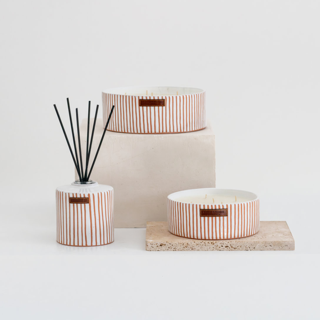 Une chaleur épicée et enveloppante. La bougie plate zébrée Terra révèle Kamoun, une senteur profonde qui invite au calme et aux instants feutrés.